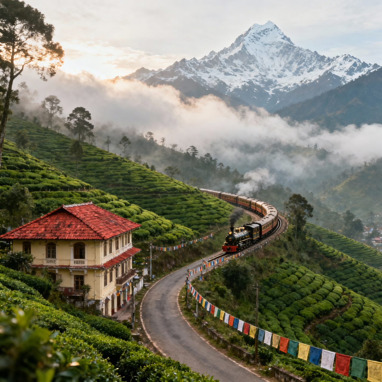 Darjeeling, nestled in the Himalayas, is famed for tea gardens, Kanchenjunga views, colonial charm, and the Darjeeling Himalayan Railway.